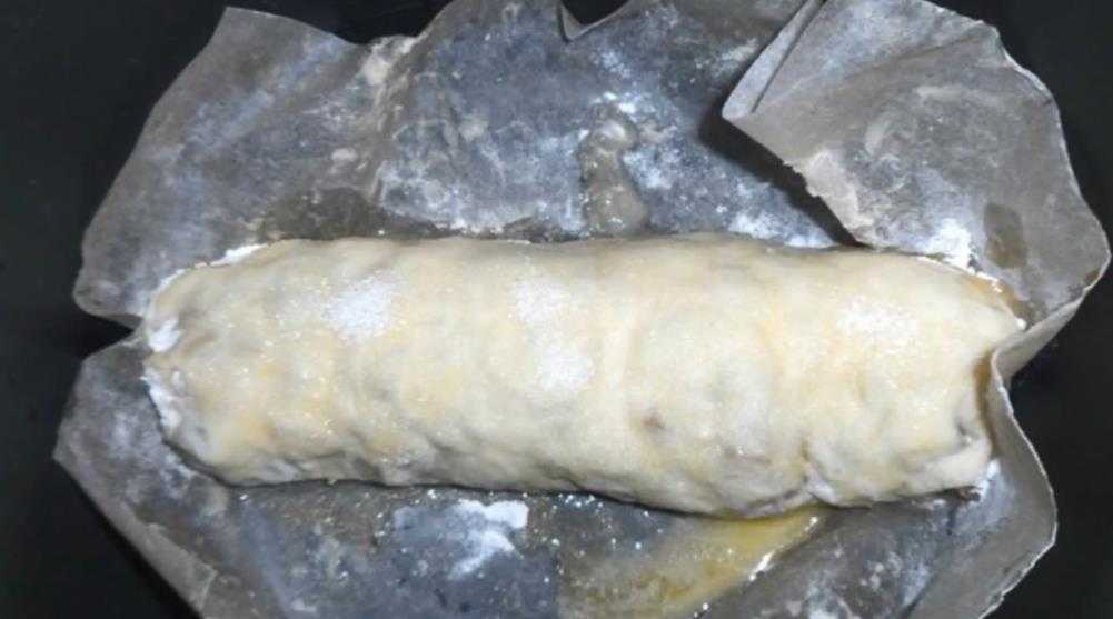 Завернула тесто рулетом.