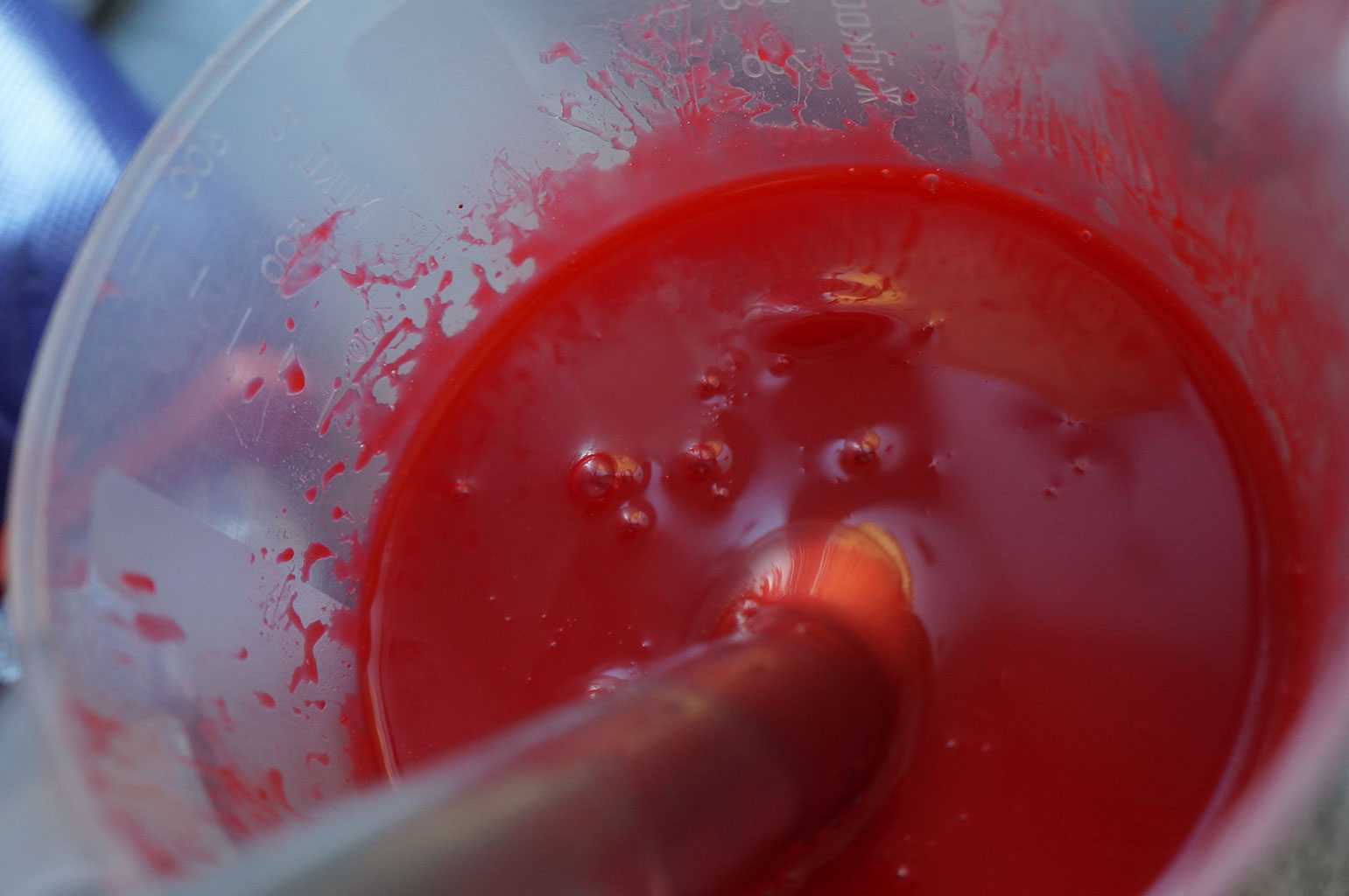 Смешивание желатина: растворить желатин в воде. Подогрейте посуду с растворенным желатином на медленном огне, постепенно добавляя глюкозу, лимонную кислоту и ароматизатор. Перемешать, не доводя смесь до кипения. Масса должна быть однородной. Когда масса достигнет этой консистенции, снимите её с огня.
