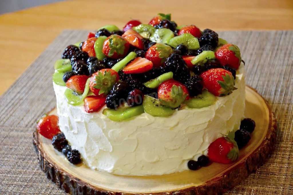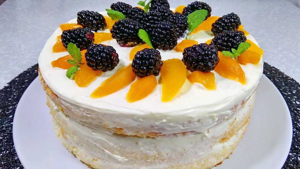 Бисквитный торт с фруктами и творожным кремом