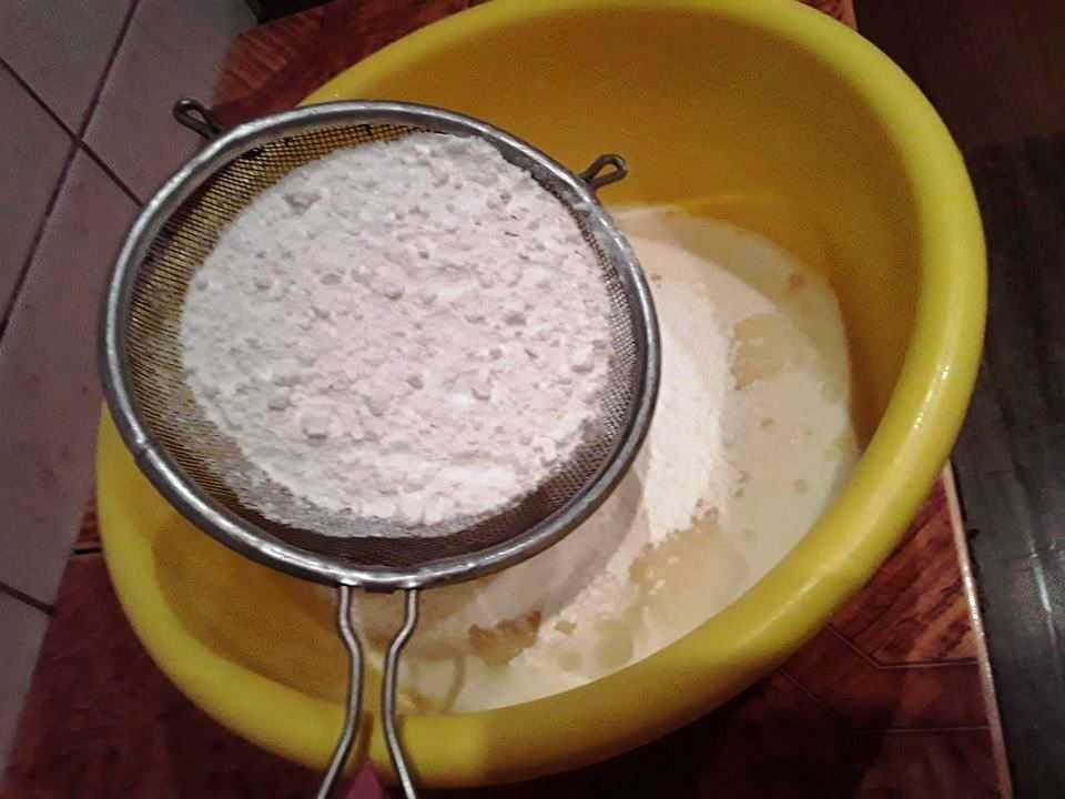 1. Первым делом начните с муки, хорошенько ее просейте в ситечке. Таким образом, оно насытится кислородом и подарит тесту некую воздушность и легкость.