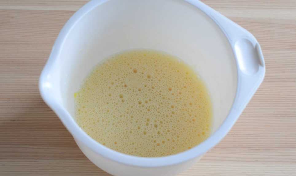 Взбейте получившуюся массу вилкой или венчиком до однородного состояния и легкой пенной шапочки.
