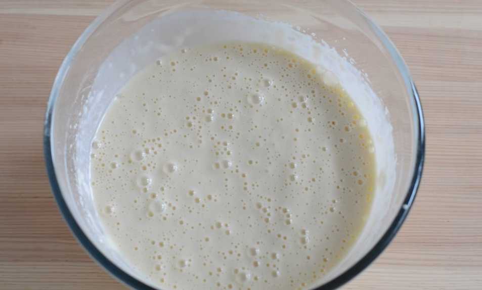 4. После настаивания влить масло и перемешать. Готовое тесто получается с большим количеством пузырьков. Это сода вступила в реакцию.