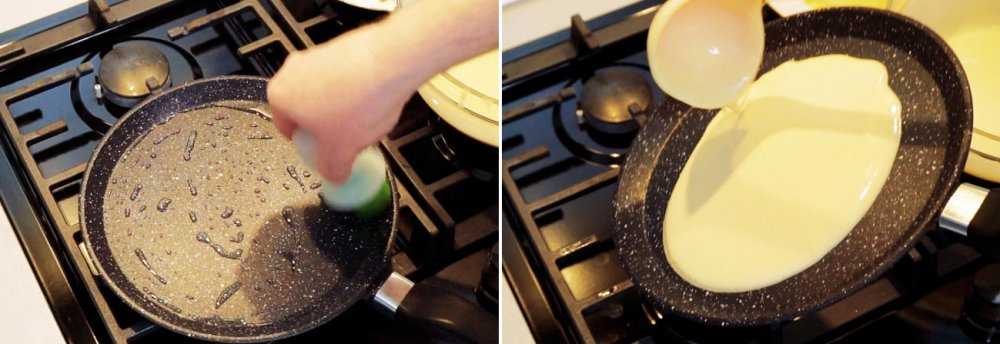 Перед готовкой нагреваем сковороду и смазываем ее маслом.