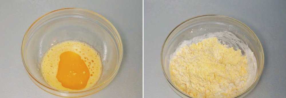 Переливаем яичную смесь в миску с мукой. Перемешиваем ингредиенты.