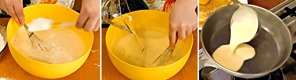Приготовление сладких блинчиков с водой и молоком (с пошаговыми иллюстрациями)