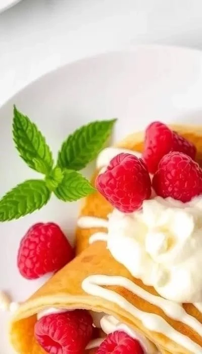 Варианты украшения: Для украшения блинов с творогом можно использовать свежие ягоды – клубнику, малину, чернику, смородину. Разложите ягоды вокруг блинов или выложите их сверху. Посыпьте блины сахарной пудрой – это придаст им праздничный вид. Можно украсить блины кусочками фруктов – бананами, яблоками, грушами, персиками. Для любителей шоколада – полейте блины растопленным шоколадом или украсьте тертым шоколадом. Небольшая веточка мяты добавит свежести и аромата.