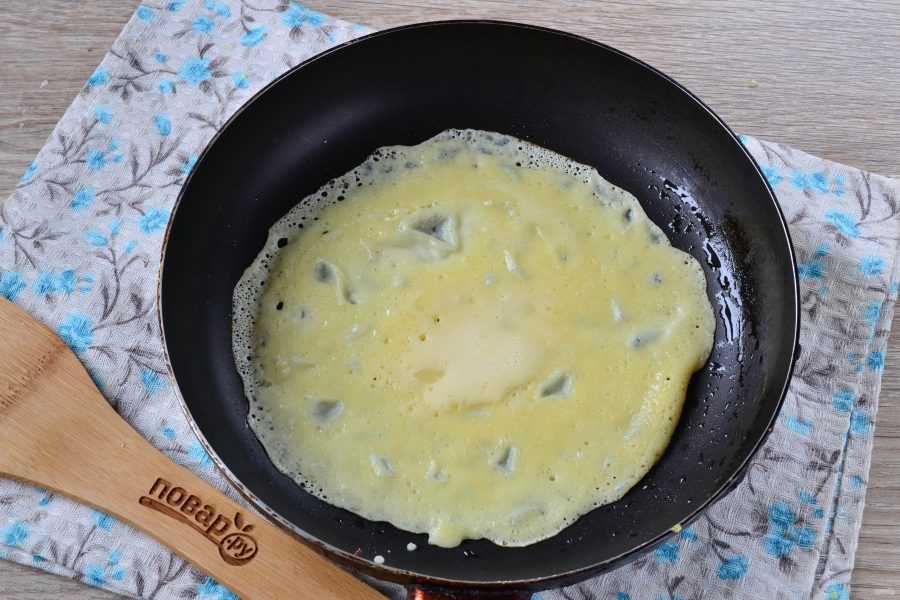 Выпекайте блинчики с двух сторон до румяного цвета.