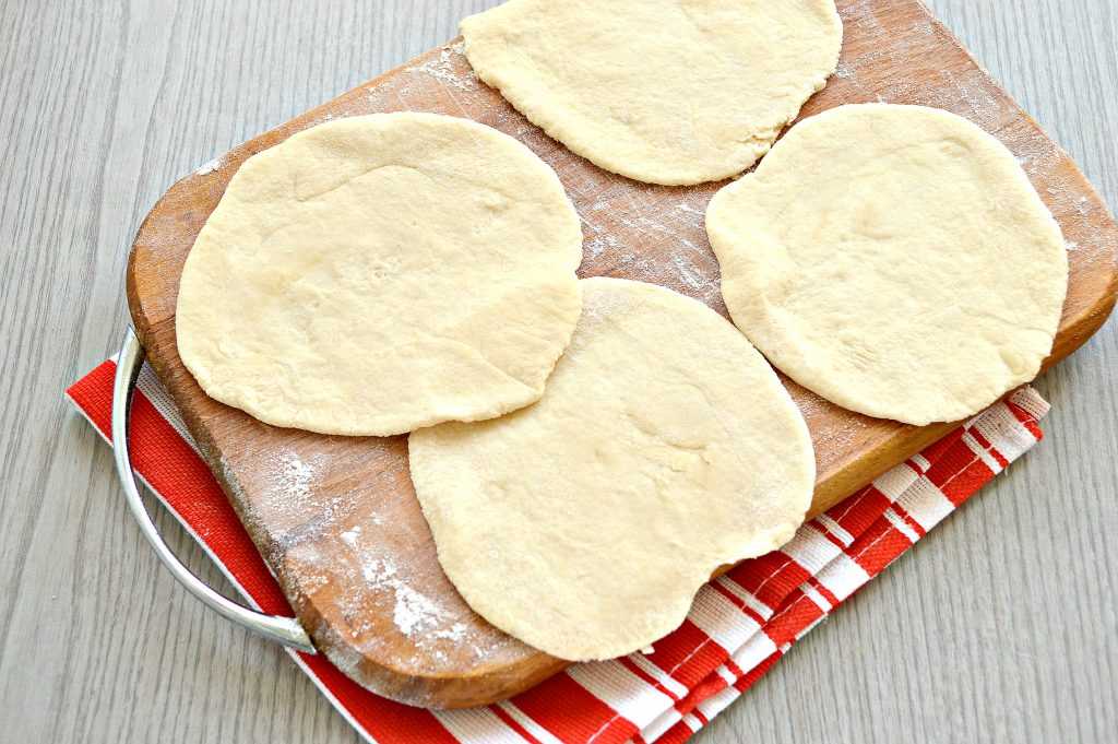 - Раскатать тесто, вырезать из него небольшие кружки.