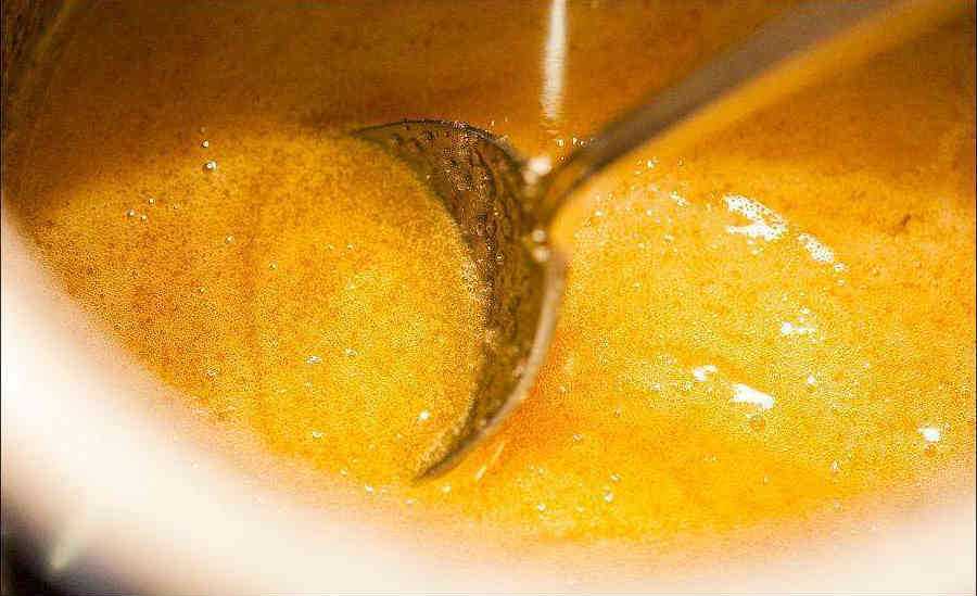 - При варке сиропа обязательно его помешивайте. Чтобы проверить готовность сиропа, возьмите немного холодной воды и капните в нее эту медовую сладость. В итоге получится липкий, как бы «пластилиновый» шарик. Самое главное — не дать сиропу перевариться до стадии карамели.