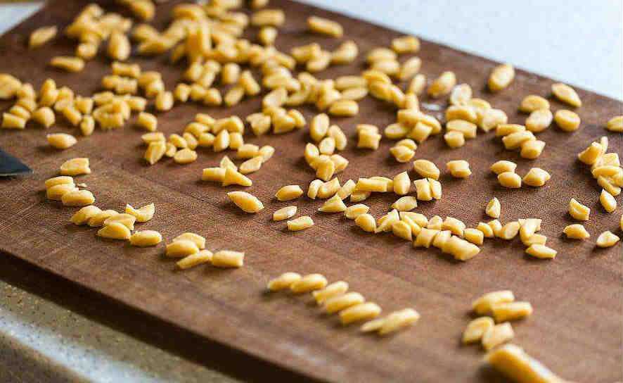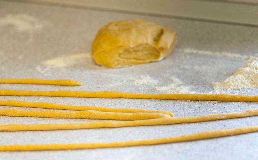 4. Если вы видите, что тесто жидкое, то добавьте еще муки. Должно получиться однородной консистенции, без всяких комков и вкраплений. Скатайте в шарик и положите его отдохнуть на пару минут (10-15 минут). Далее сделайте вот такие потешные колбаски или жгутики. Делайте это процедуру вручную.