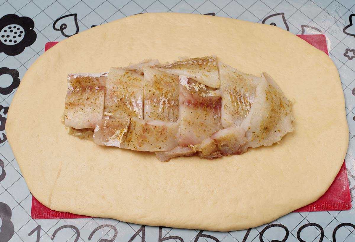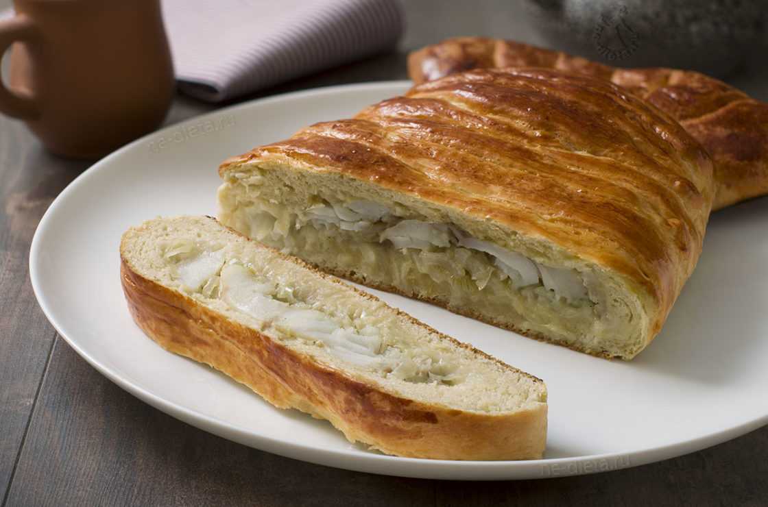Рыбный пирог с капустой из дрожжевого теста в духовке. Пошаговый рецепт: