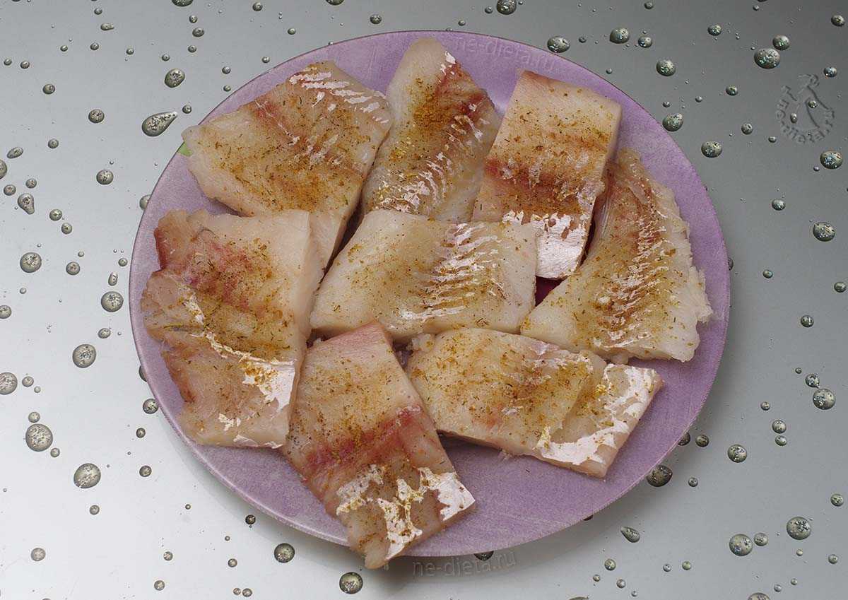 - Рыбу нужно нарезать средними кусочками и выложить в миску.