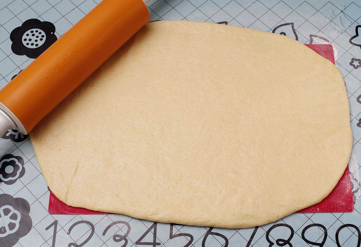 - Большую часть теста раскатываем скалкой, создавая идеально круглую форму.