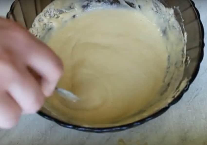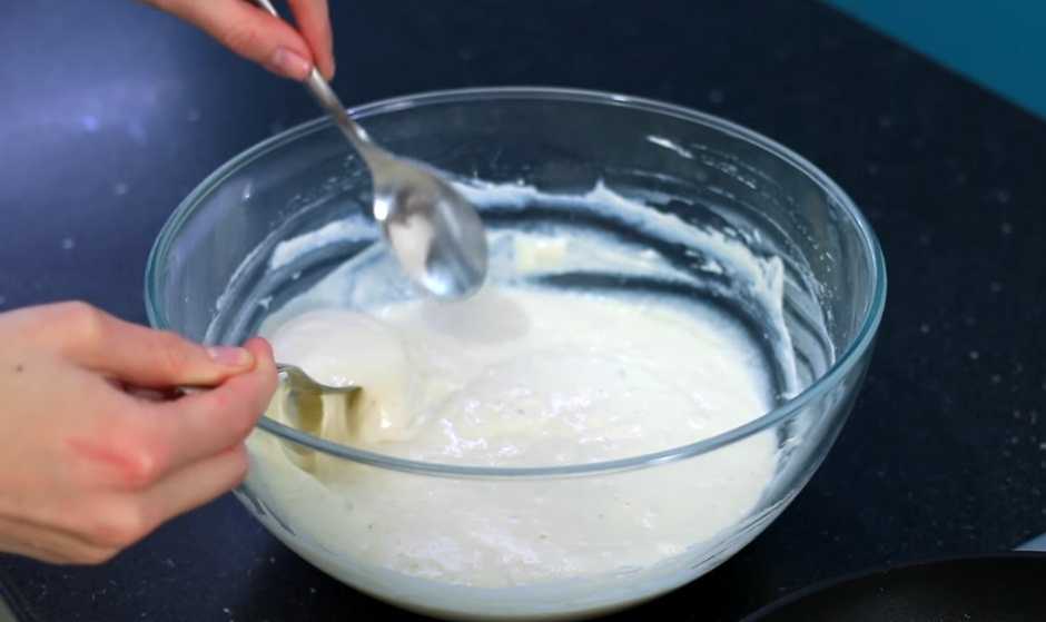 Готовое тесто слаботекучее, если набрать его на ложку, то оно будет лениво сползать с нее вниз.
