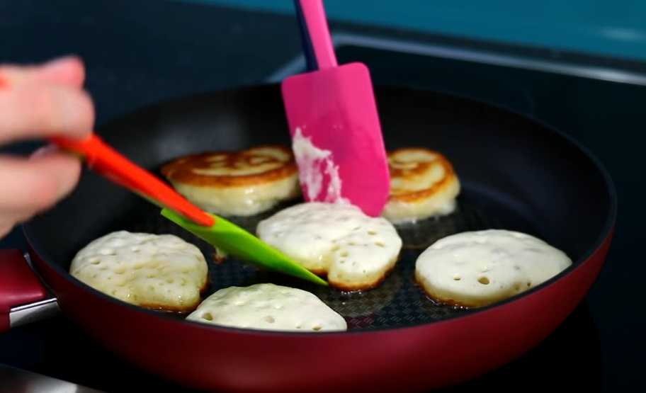 Если он будет слишком сильным, то оладушки не пропекутся внутри, а если слишком слабым, то они заберут в себя огромное количество масла, а нам это не нужно.