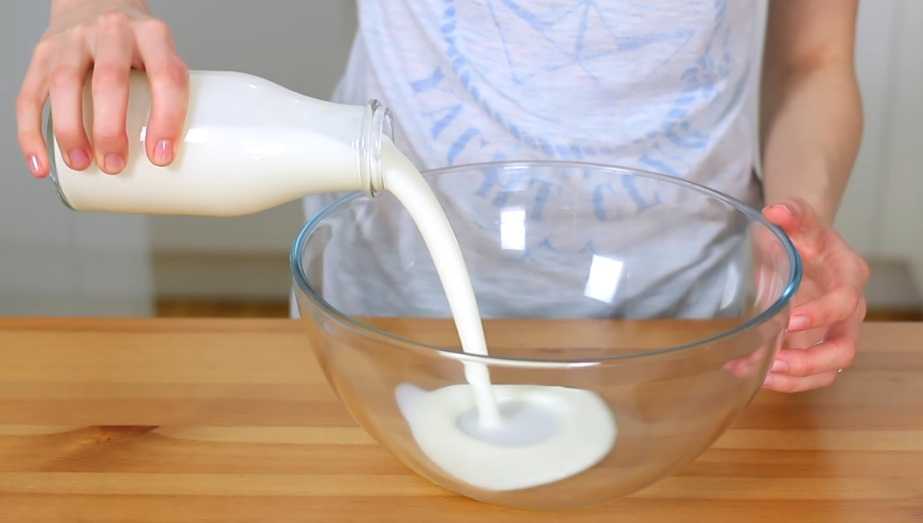 Чуть-чуть нагреть кефир, он должен быть буквально на несколько градусов теплее комнатной температуры