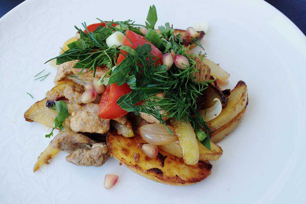 Как правило, в ресторанах оджахури подают на кеци — глиняной или каменной сковородке. Но дома можно все переложить на тарелки.