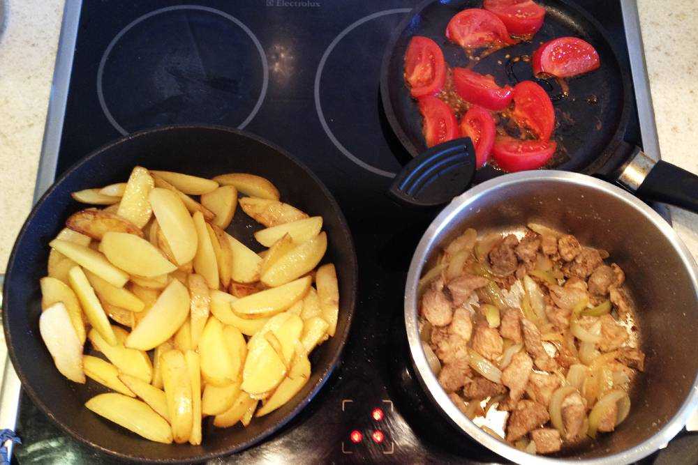 Я готовила сразу несколько порций, и ингредиенты не поместились в одну посуду — пришлось доставать еще сковородку и кастрюлю