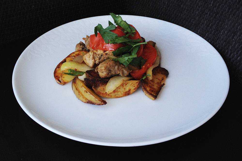 Мы будем готовить оджахури от шефа Георгия Мтвралашвили с моими дополнениями. Это блюдо особенно хорошо именно свежеприготовленным: если его подогреть даже в тот же день, оно будет совсем не таким. Это особенность жареной картошки.