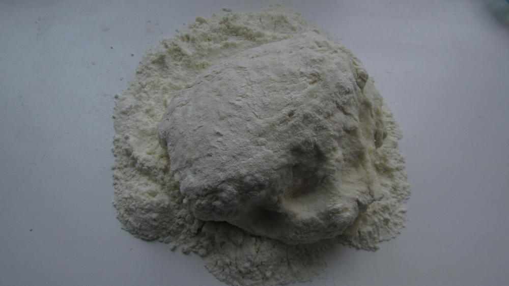 - Сначала нужно приготовить тесто. Его лучше готовить заранее, чтобы оно стало более однородным и плотным, но в то же время оставалось мягким. Мацони перемешать с яйцом, солью, сахаром и содой. А затем постепенно подсыпать муку.