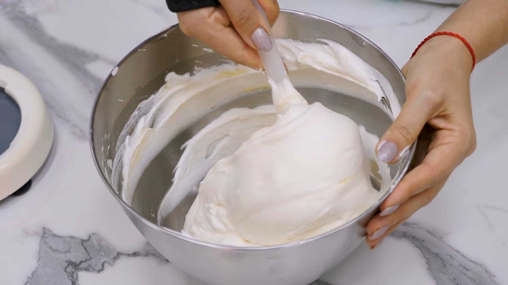 Введите в белковую массу желтки