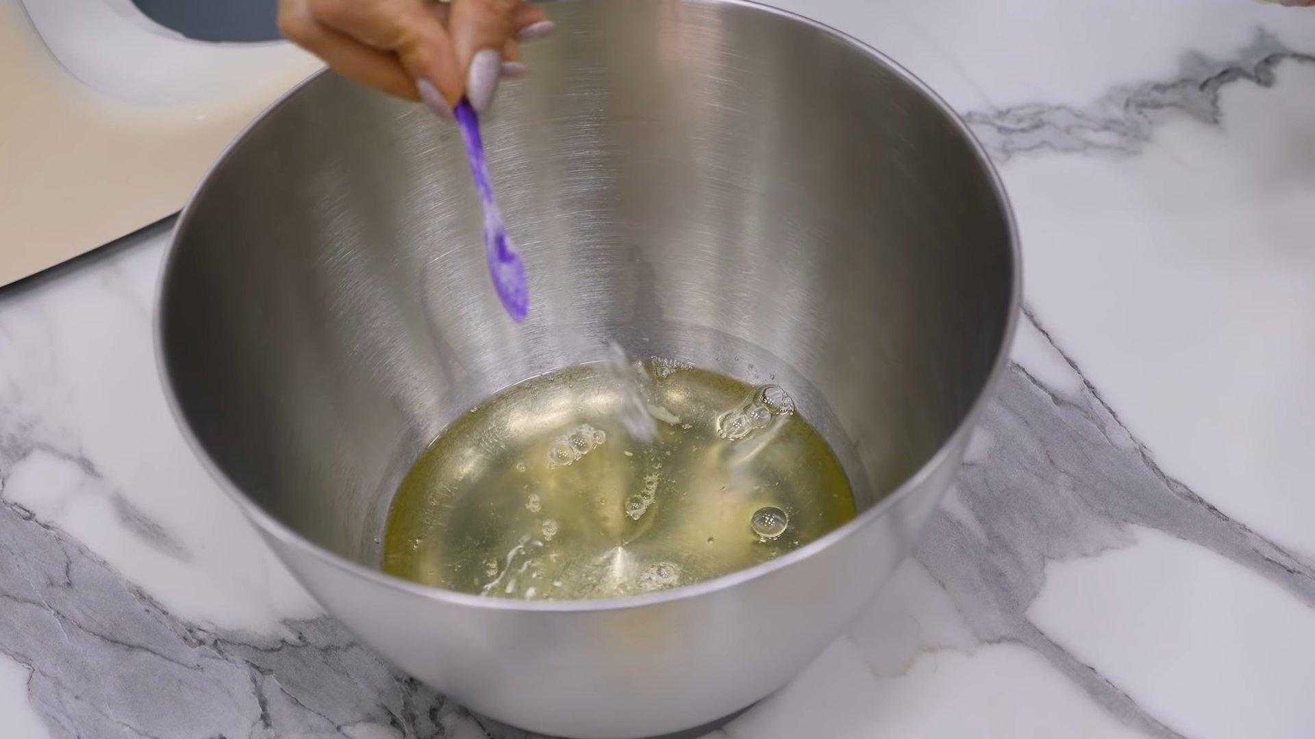 Взбейте желтки венчиком со щепоткой соли.
