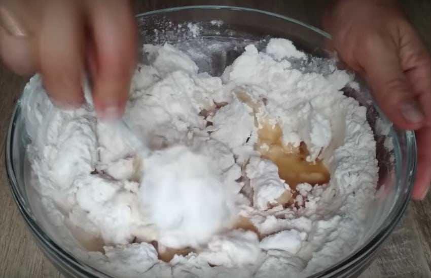 - Оставлять дрожжи не нужно. В массу сразу всыпается предварительно просеянная мука. Добавлять ее нужно минимальными порциями.