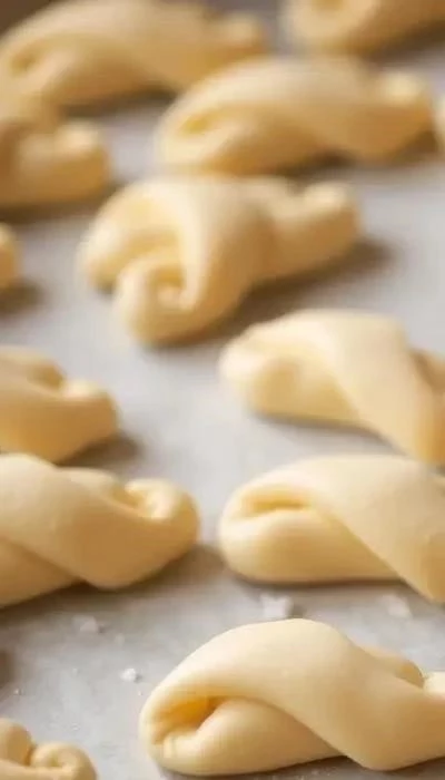 Шаг 6: С помощью ножа или формочки нарежьте тесто на полоски шириной около 1-2 см. Слегка изогните каждую полоску, чтобы придать ей форму «полена».