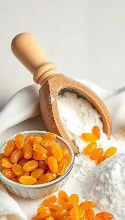 Шаг 4: В отдельной миске смешайте муку с разрыхлителем. Постепенно добавляйте мучную смесь в масляную смесь, замешивая мягкое и эластичное тесто. В конце добавьте изюм и аккуратно перемешайте.
