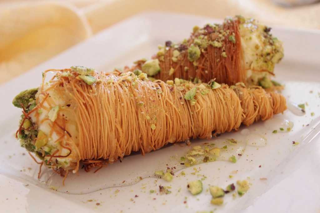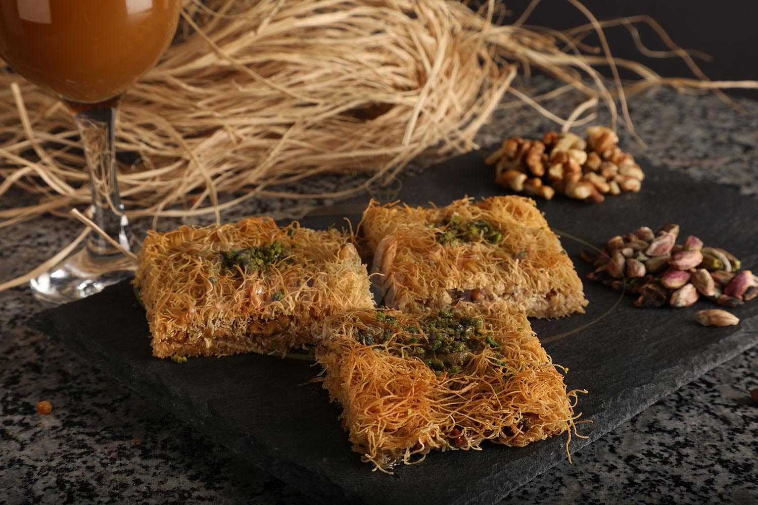 Появление этого блюда возникло случайно. Изначально Кадаиф готовили в Ливане в 15 веке. На сковороду, где готовились лепешки случайно попало немного молока. В результате молоко и тесто смешалось и получились тонкие волокна, которые съели с сиропом и сыром.