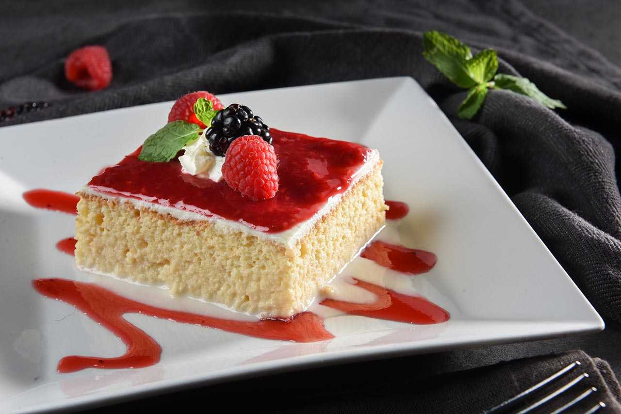 Трилеше-это мягкий торт, похожий на тирамису, приготовленный из трех различных видов молока (коровьего, овечьего и буйволиного) с карамельным слоем сверху.