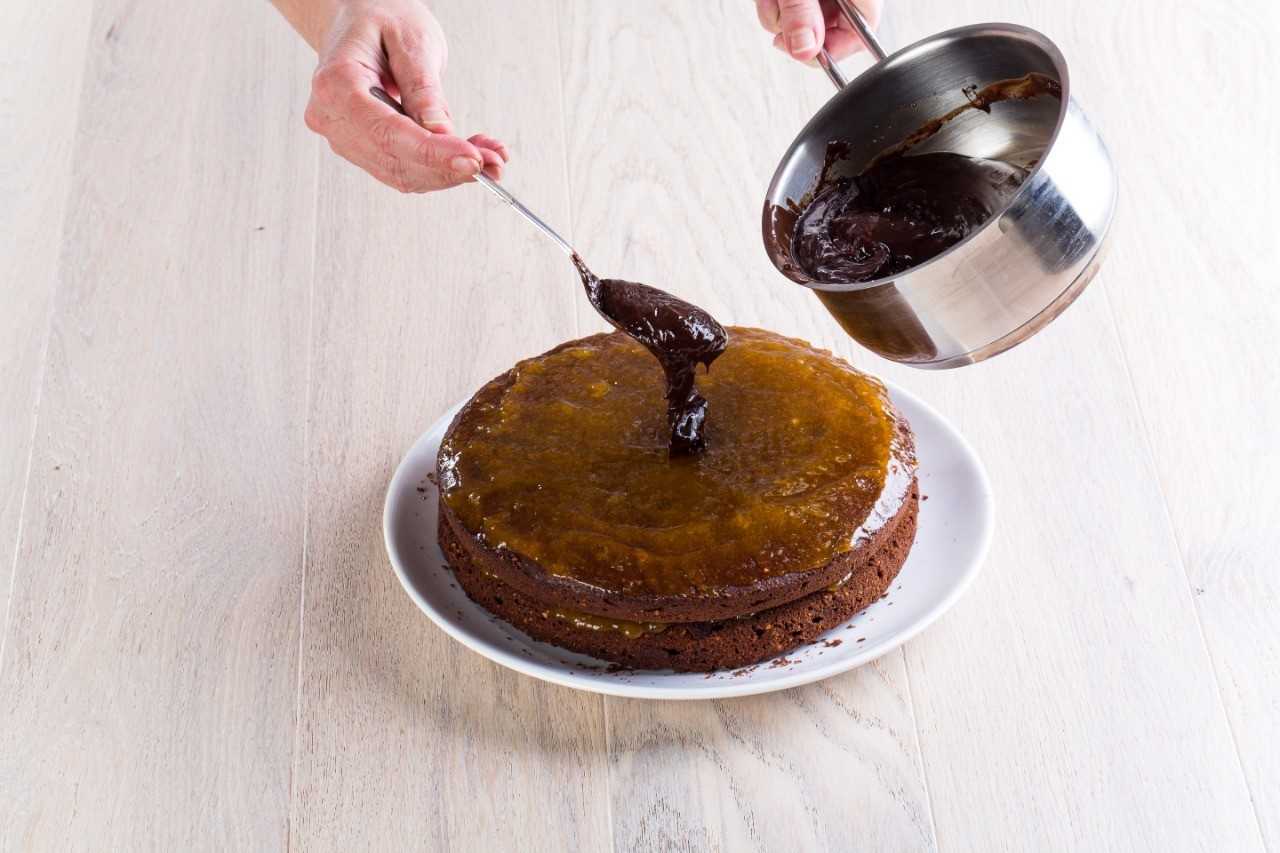 Если торт предназначен для вечеринки взрослых, лучший способ подчеркнуть шоколадные нотки – дополнить пропитку парой капель коньяка.