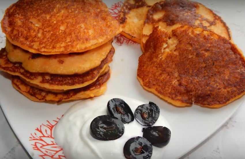 Точно скажу, что такие оладьи не получатся очень пышными, они будут средней высоты и приятной желейной консистенции. Это блюдо тоже диетическое, хотя, если мы съедим его со сметаной пожирнее, то куда денется диета!