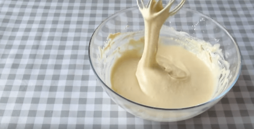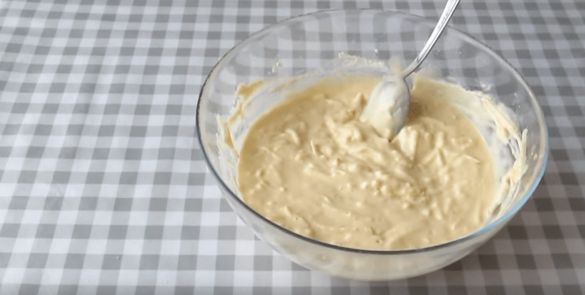 У нас тесто должно получиться, как я уже говорил в первом рецепте, схоже с густой сметаной — это идеальная консистенция для нашего блюда.