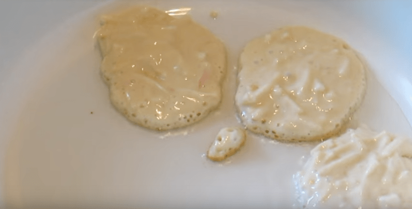 2. А теперь самая ответственная работа это жарка. Выпекайте аккуратные лепешечки, заметьте, что они получаются очень ровными, так как консистенция теста получится чуть-чуть жиже, чем в классическом варианте. На сковороду также налейте немного растительного масла и хорошо раскалите, а затем убавьте огонь.