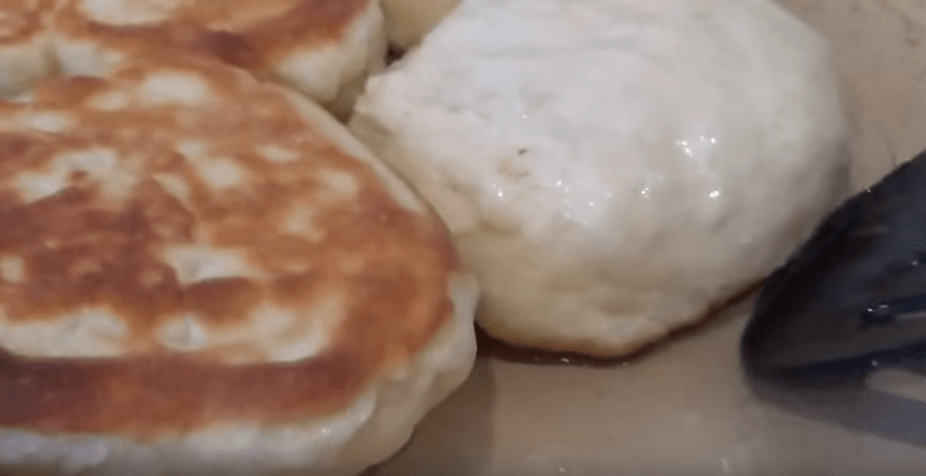 После приготовления теста, разогрейте сковороду и налейте в нее растительное масло. Выкладываем массу на горячую поверхность ложкой. Жарим каждую сторону лепешки по 3 минуты на среднем огне. Золотистый румянец свидетельствует о готовности оладий на кефире.