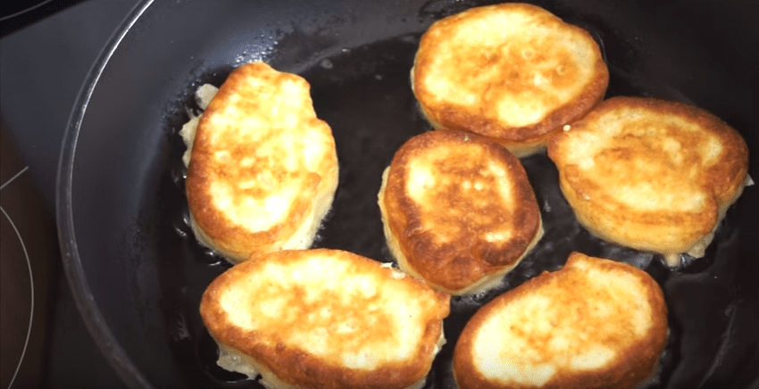 5. В сковороду налить немного масла и нагреть на среднем огне. Масло должно быть хорошо разогретым, иначе выпечка его полностью впитает и будет жирной. Капните немного теста — если оно запузырилось, значит масло достаточно горячее.