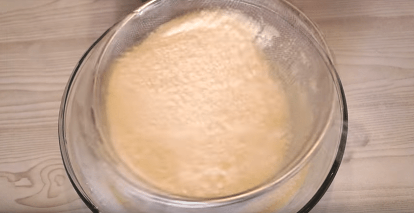 - Через полчаса на поверхности должна образоваться «шапка», это будет означать, что дрожжи хорошо распустились, так что можно продолжать работу с тестом.