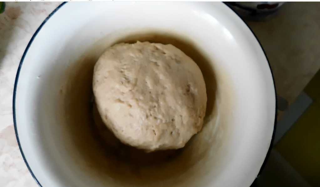 - Смешайте рассол с сахаром и маслом. Затем добавьте соду, муку, замесите тесто.