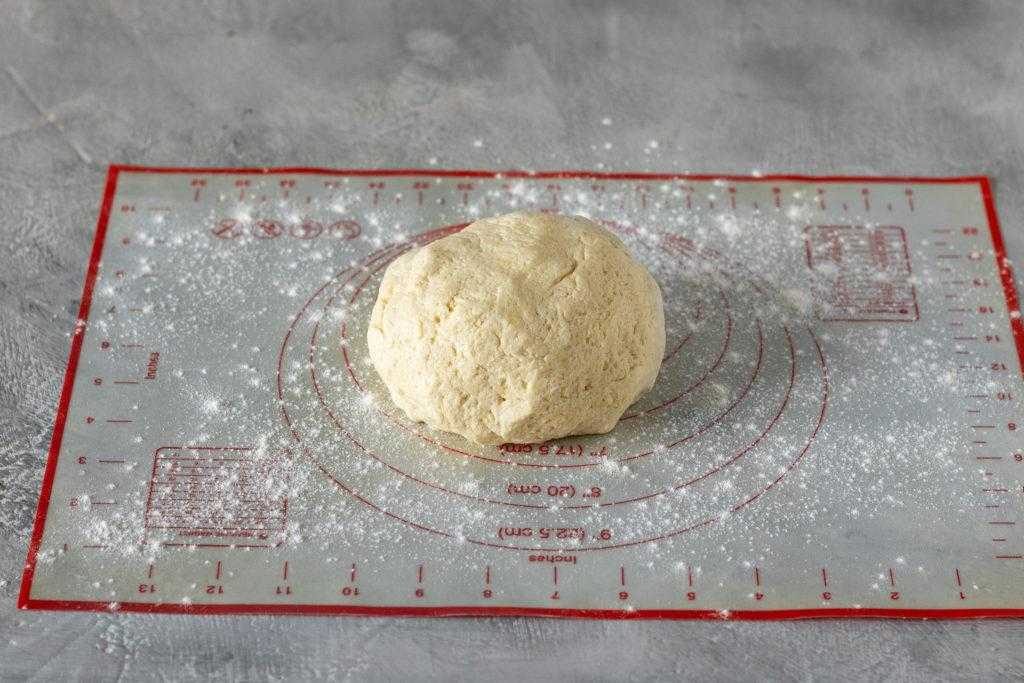 - Маленькими порциями, добавляя муку, замесить тесто.