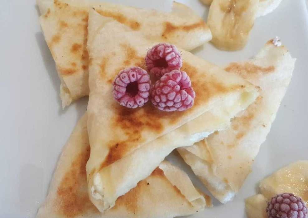 Если вы следите за фигурой, такой десерт вам понравится. Он готовится без муки и почти без сахара. Банан добавляет сладость, а также заменяет яйцо. Вся начинка держится в конвертике из тонкого лаваша. При желании готовые треугольники вы можете слегка обжарить на растительном масле, чтобы получилась хрустящая корочка.