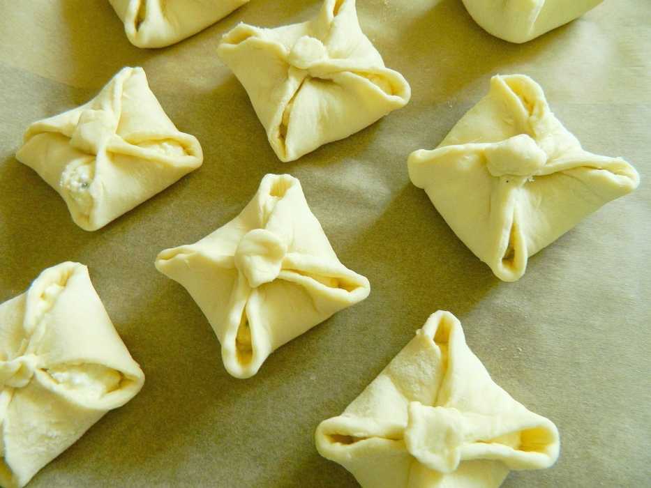 Методика приготовления теста во всех рецептах примерно похожа, хоть и имеет определенные отличия. Также вы можете использовать идеи для декора в любом рецепте, по-разному складывая и нарезая треугольники.
