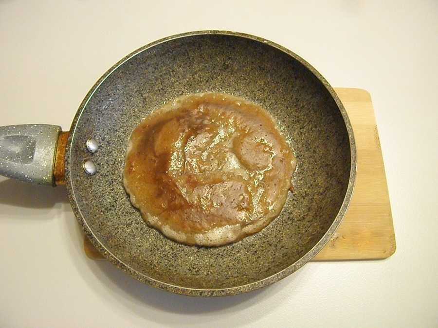 - Из полученного печеночного «теста» испечь средней толщины блинчики. Обжаривать с каждой стороны по 1–2 минуты, до получения румяной корочки.