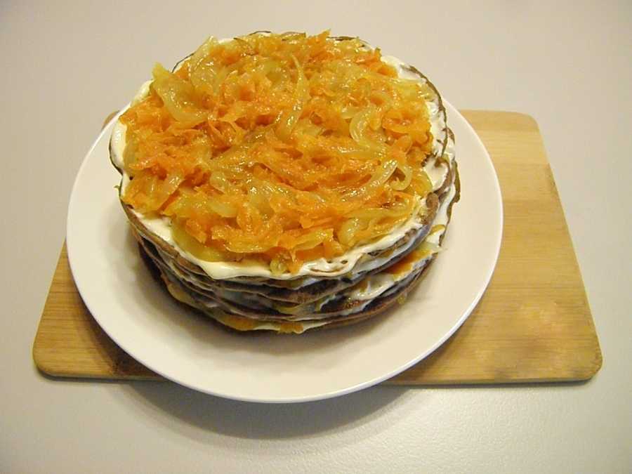 Печеночный торт из свиной печени с морковью — классический рецепт