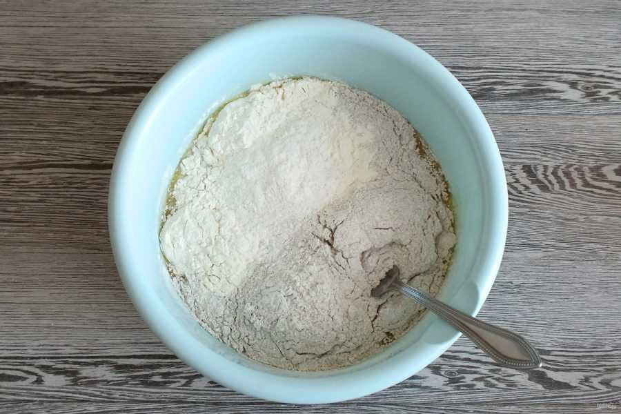 Общее количество муки должно составлять около 250 г, но вы можете на свой вкус регулировать пропорции: взять 50/50 пшеничной и ржаной муки или вообще не использовать ржаную муку, если у вас ее нет под рукой.