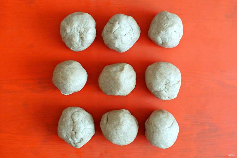 Вернитесь к тесту: разделите его на 8-10 маленьких равных шариков, затем возьмите по одному и раскатайте довольно тонко, примерно до 10 см в диаметре.