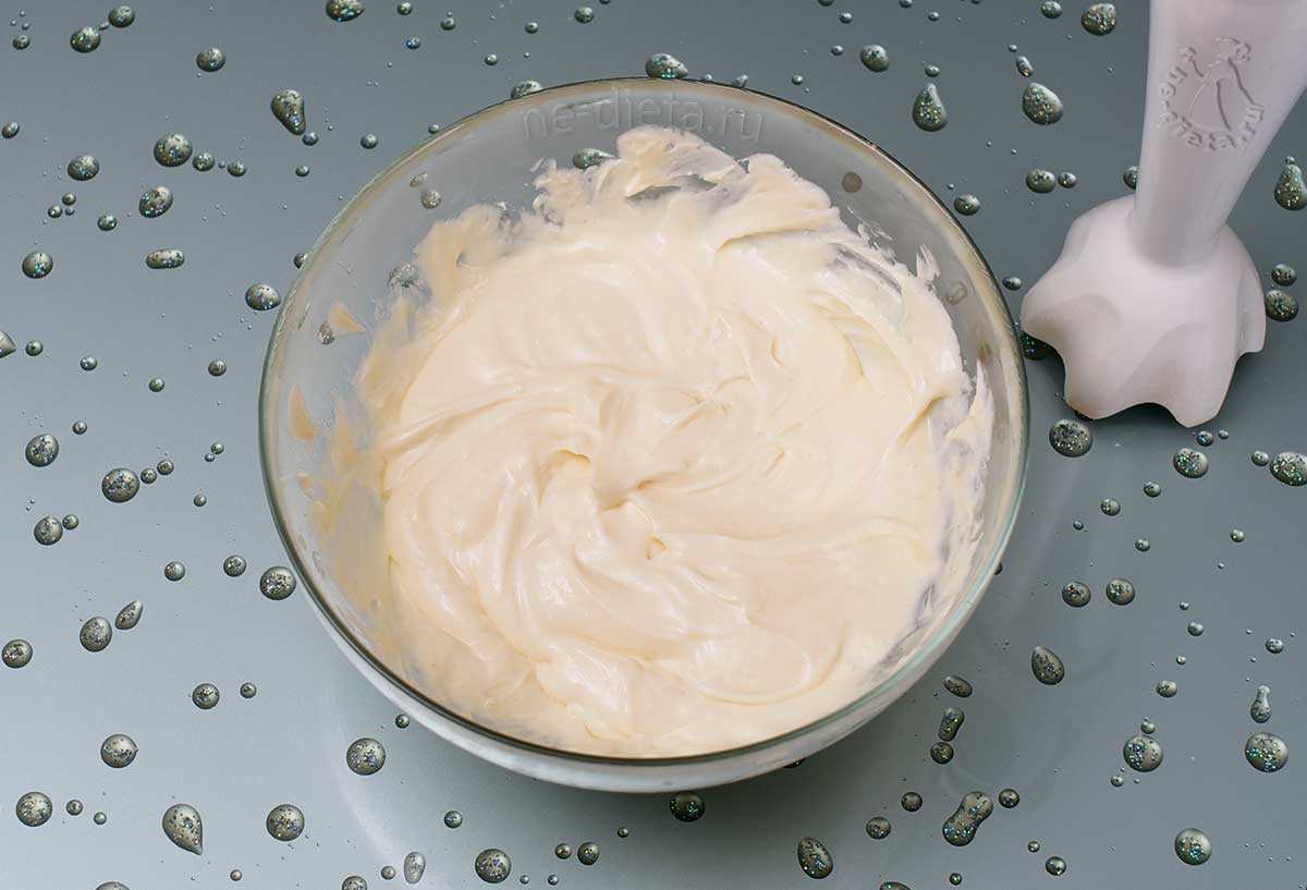 Вводим эту смесь в масло и работаем миксером еще буквально несколько секунд до объединения компонентов.