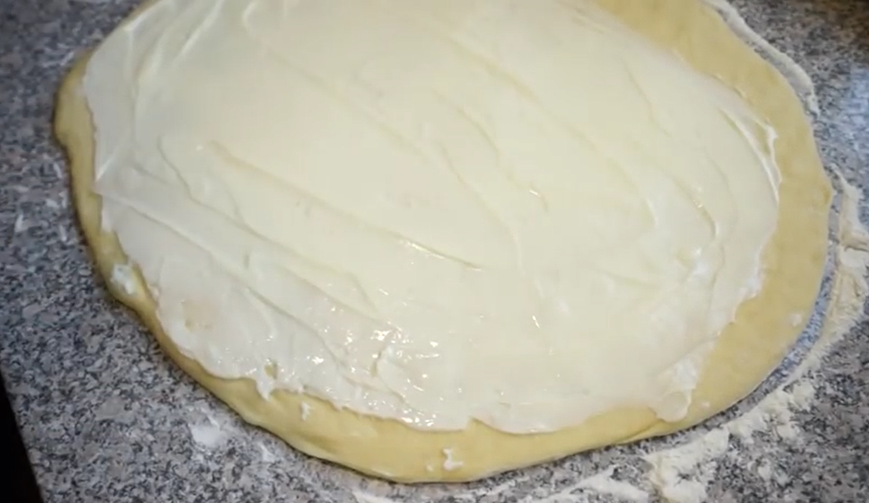 9. Теперь двумя руками тесто сворачиваем в рулет.