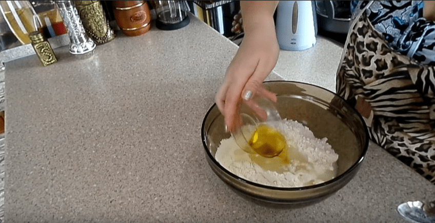 7.Во время вымешивания смажьте руки растительным маслом. Так будет легче работать с тестом, оно будет более послушное.