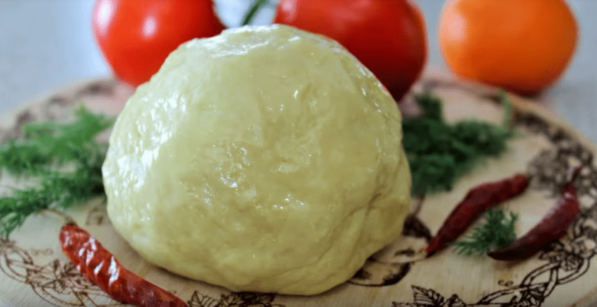 - Кто любит тесто потоньше — вымешивайте как на пельмени (плотное и тугое тесто). В этом случае получившееся тесто раскатываем скалкой до нужной толщины.